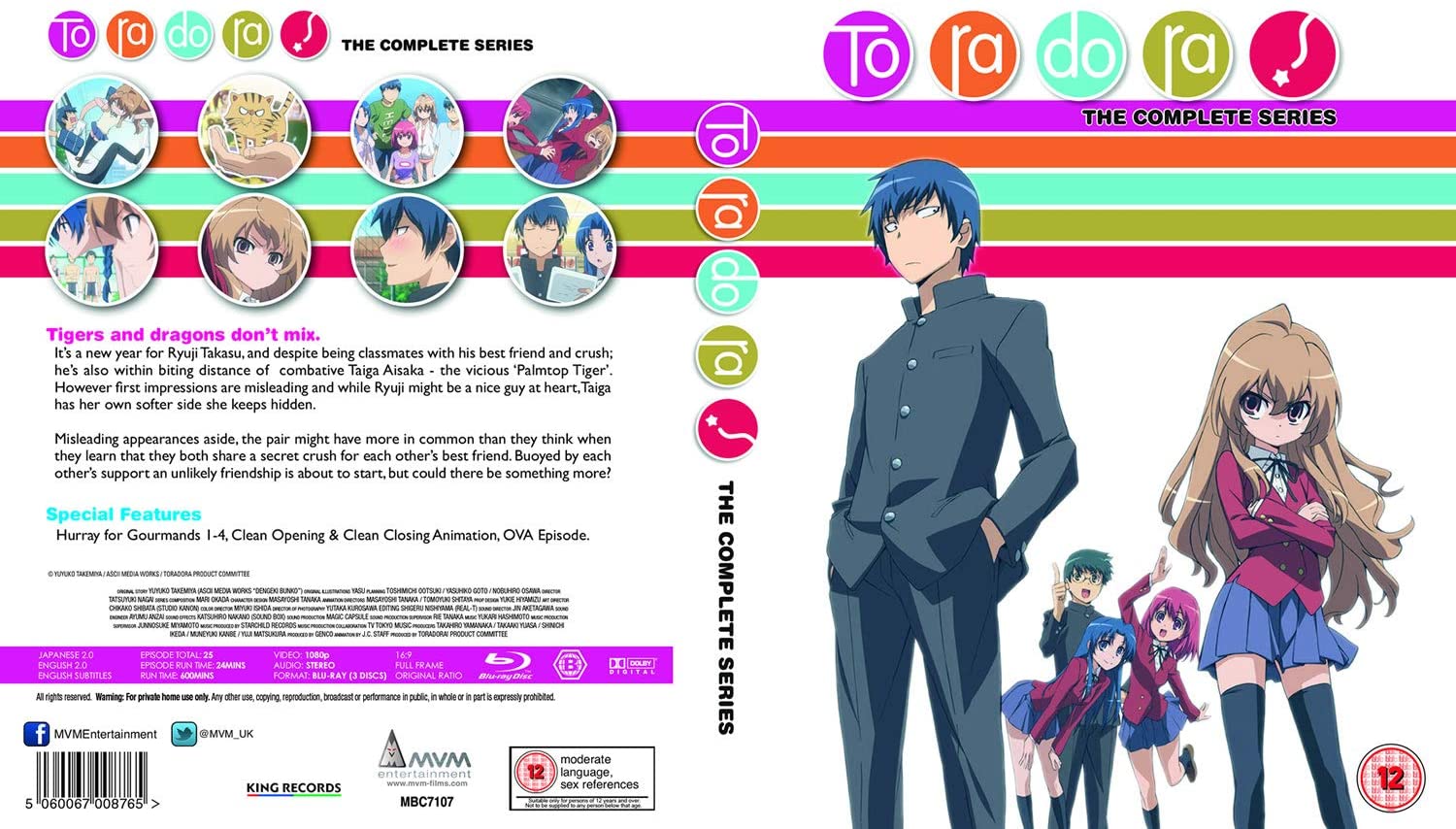 Ryuji Takasu is cursed with his father's threatening face and is labeled a "delinquent" because of it. Even though this makes it difficult for him to meet people, he is madly in love with Minorin, the one girl who does not flee from him in terror. Taiga Aisaka is a notorious hothead with the nickname "Palm-top Tiger." She also happens to be Minorin's best friend, and what's more, Taiga has a crush on Ryuji's closest friend.