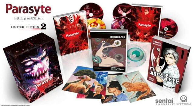 Parasyte - the maxim Limited Edition contains episodes 13-24 plus a chipboard box, manga, manga art cards, and a CD. Special Features: Clean Opening and Closing Animations.